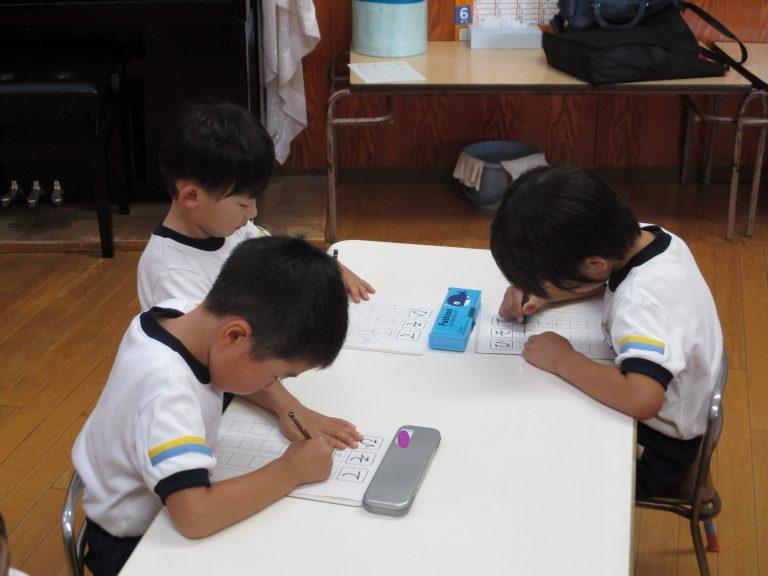 お手本を見ながらそ~っとそ~っと書いている子供たち