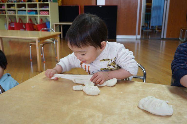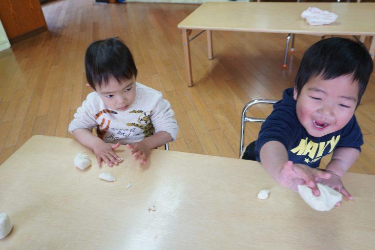 そんな中で今週は小麦粘土でお餅ぺったん遊びをしました♪♪