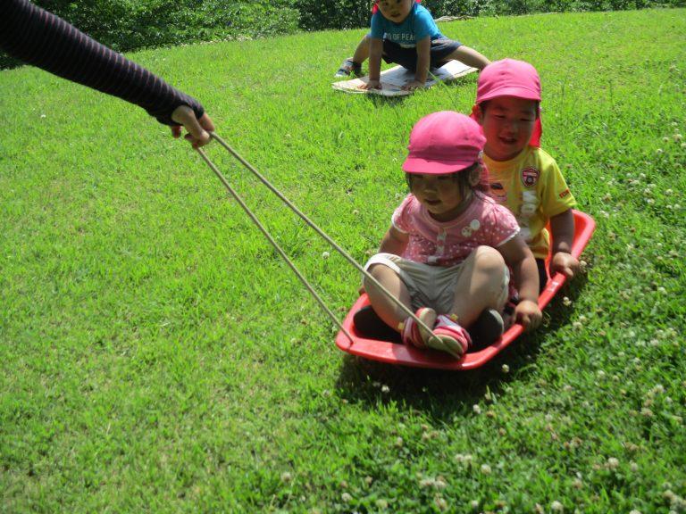 今日はとても良いお天気の中、みんなで土手すべりにお出かけしてきました。