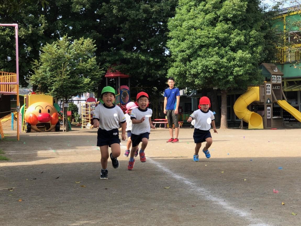 爽やかなお天気だったので、お庭で運動会ごっこをしたり