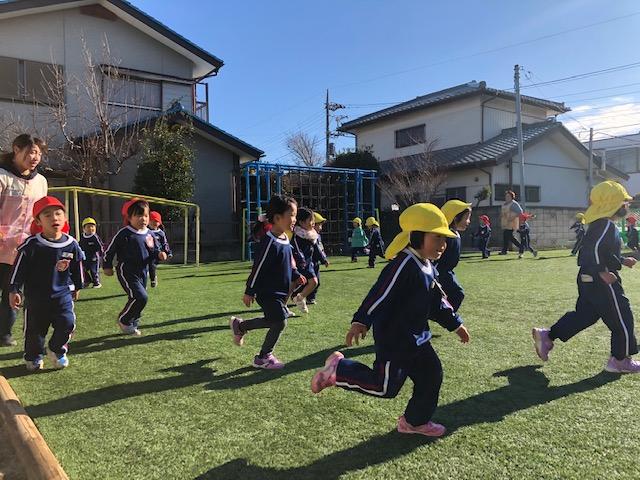 1日の始まりに元気いっぱい体操をして皆んなでマラソンをします!