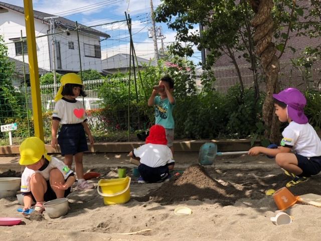 園庭遊びでは思い思いの遊び方で砂と関わる子ども達♪♪