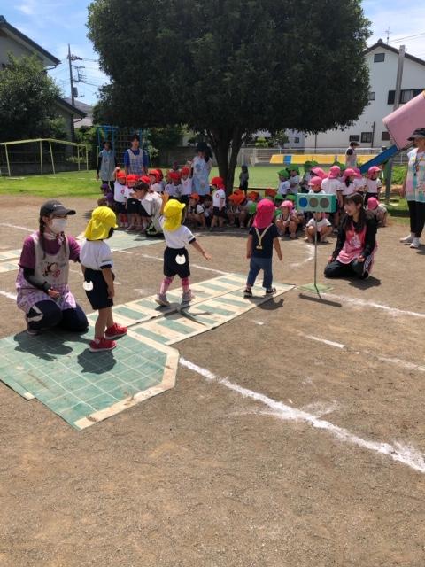 園庭でみんなで横断歩道の渡り方を練習しました!