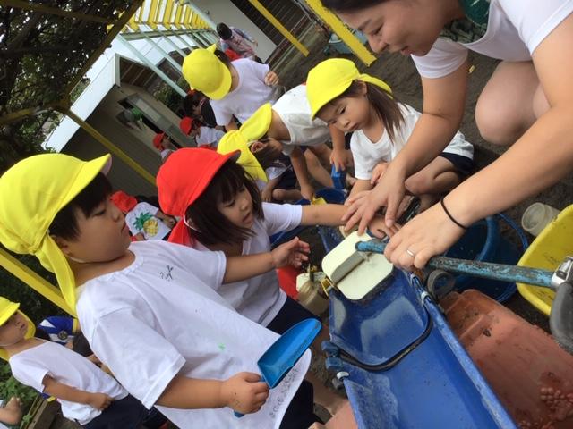 いつものお砂場は水路遊びコーナーに♪