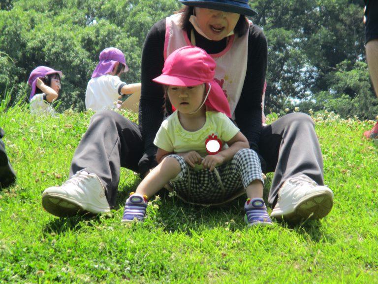 今日はとても良いお天気の中、みんなで土手すべりにお出かけしてきました。
