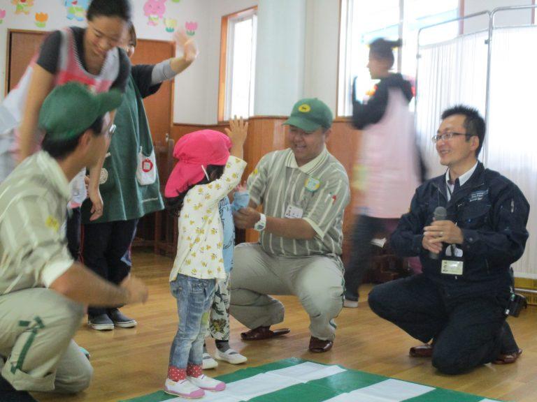 お話の後には、みんなで横断歩道の渡り方を練習しました